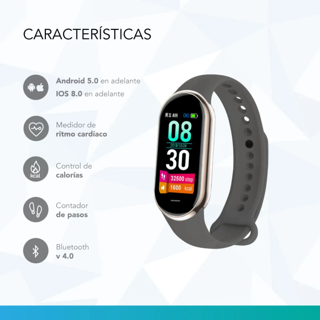 Compatibilidad Universal: Sincronizá fácilmente con tu smartphone, tanto Android como iOS, para acceder a todas las funciones de tu smartband sin complicaciones.